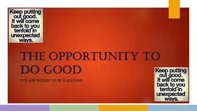 We have been blessed to be a blessing. Oftentimes, what we give to others can be the ministry of presence (being there for and with them without providing money or other tangible items). Taking time to pray is another way of doing good for others. May we consistently seek and take advantage of the opportunity to do good.